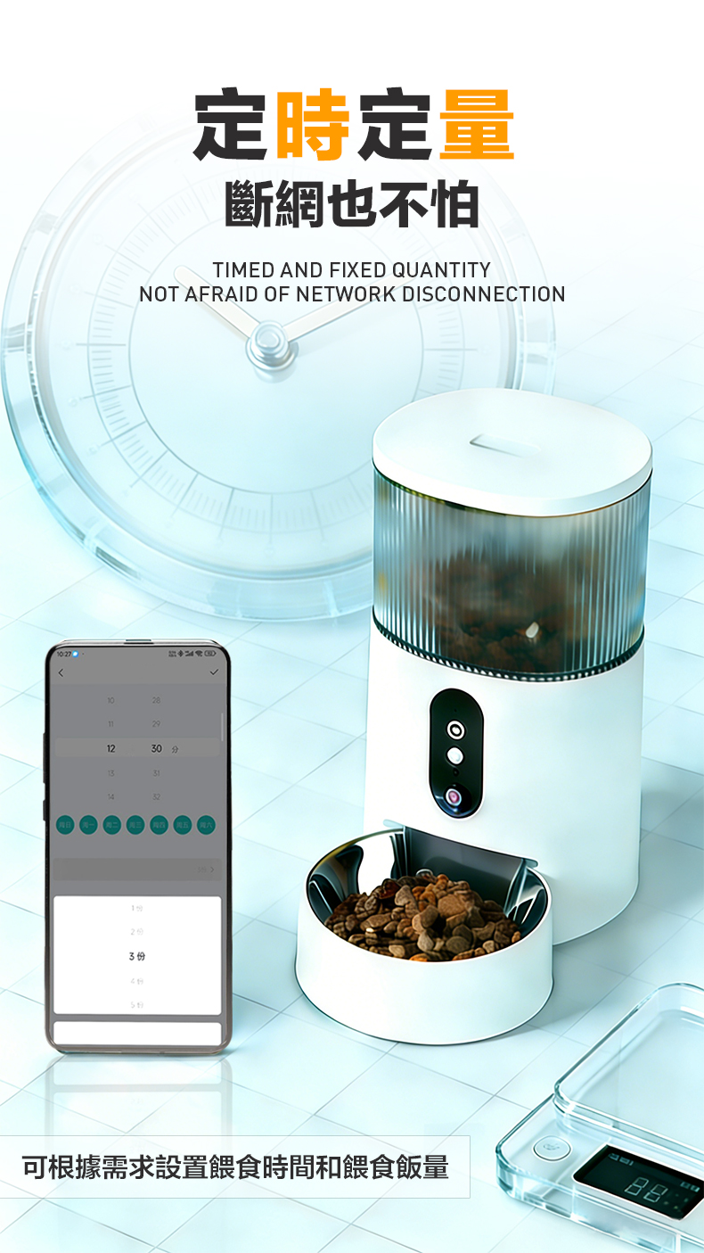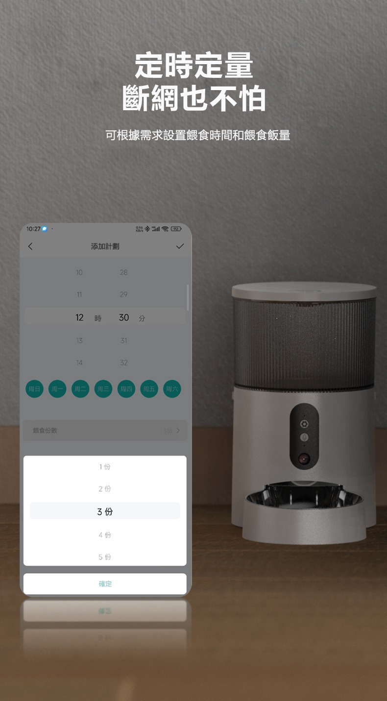 可以,只需在初次設定時,透過手機開啟熱點來分享網路,將餵食計劃設定好後,設備會將餵食計劃儲存在晶片內。設備會依照您最初設定的餵食計劃,準時按量投放飼料
